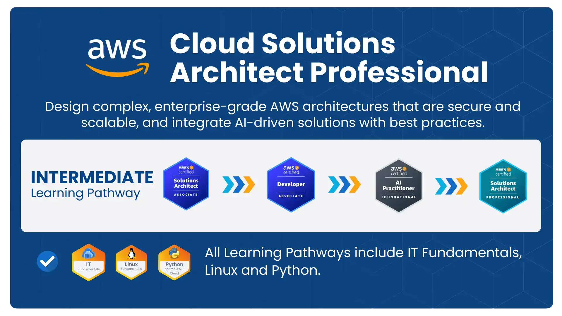 Advance your expertise to design complex, enterprise-grade AWS architectures that are secure, scalable, integrate AI-driven solutions, and support modern application development with best practices.